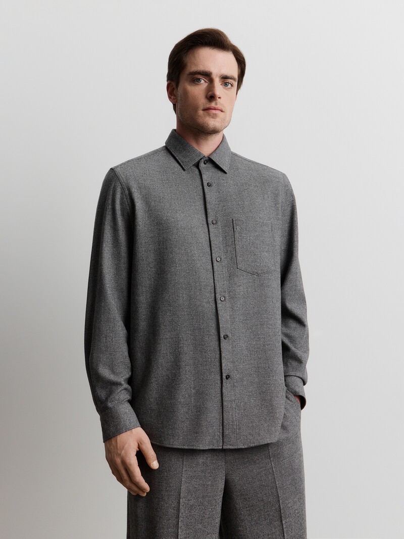 Расслабленная и уютная рубашка из мягкой теплой фланели от итальянской фабрики Drago. Инновационная обработка тонкой шерсти защищает ее волокна от пыли и влаги, помогая вам сохранять безупречный вид в течение дня. Благодаря свободному силуэту и скругленным разрезам рубашку комфортно носить самостоятельно или поверх футболок. Сделано в Китае.