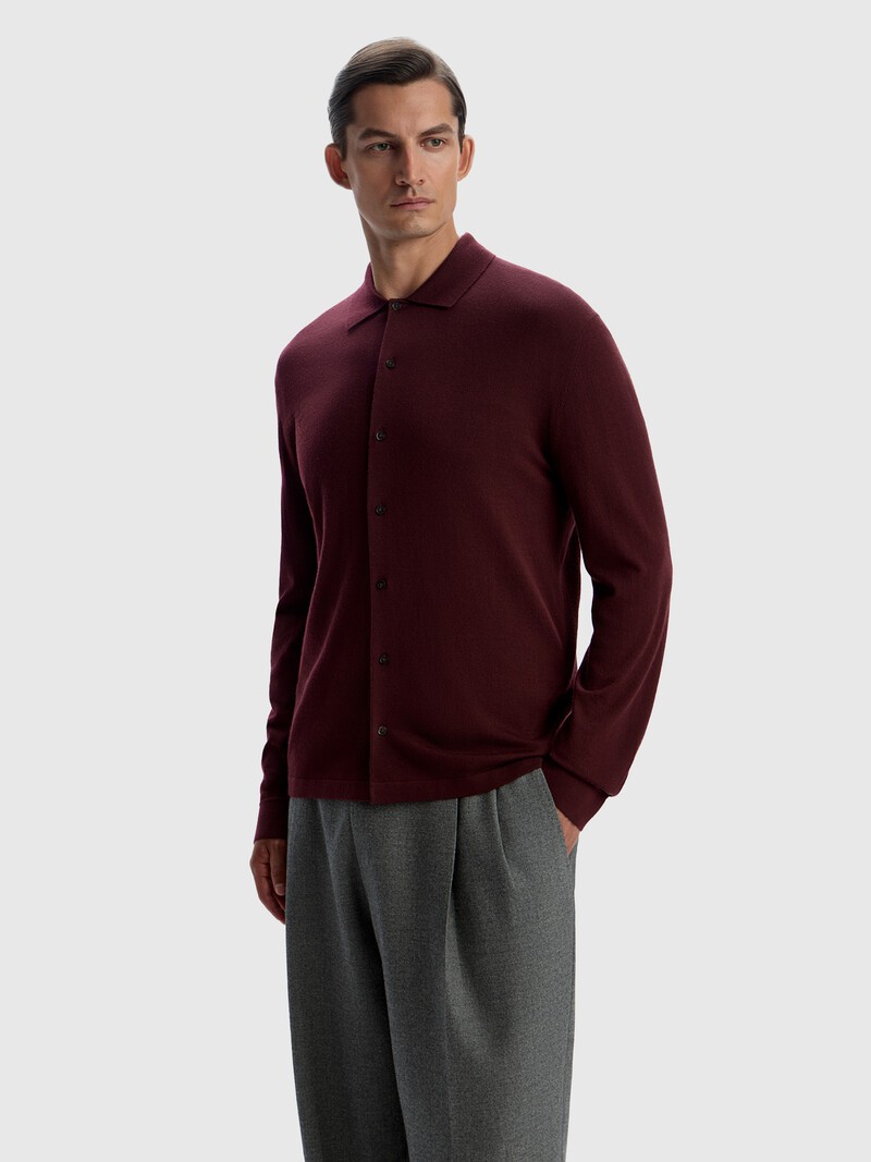 Свободная и уютная рубашка, которую можно носить с футболками нараспашку или как первый слой. Связана в одну нить мелкими петлями из тонкой шелковистой шерсти австралийского мериноса, комфортной и согревающей. Застегивается на пуговицы. Сделано в Китае.