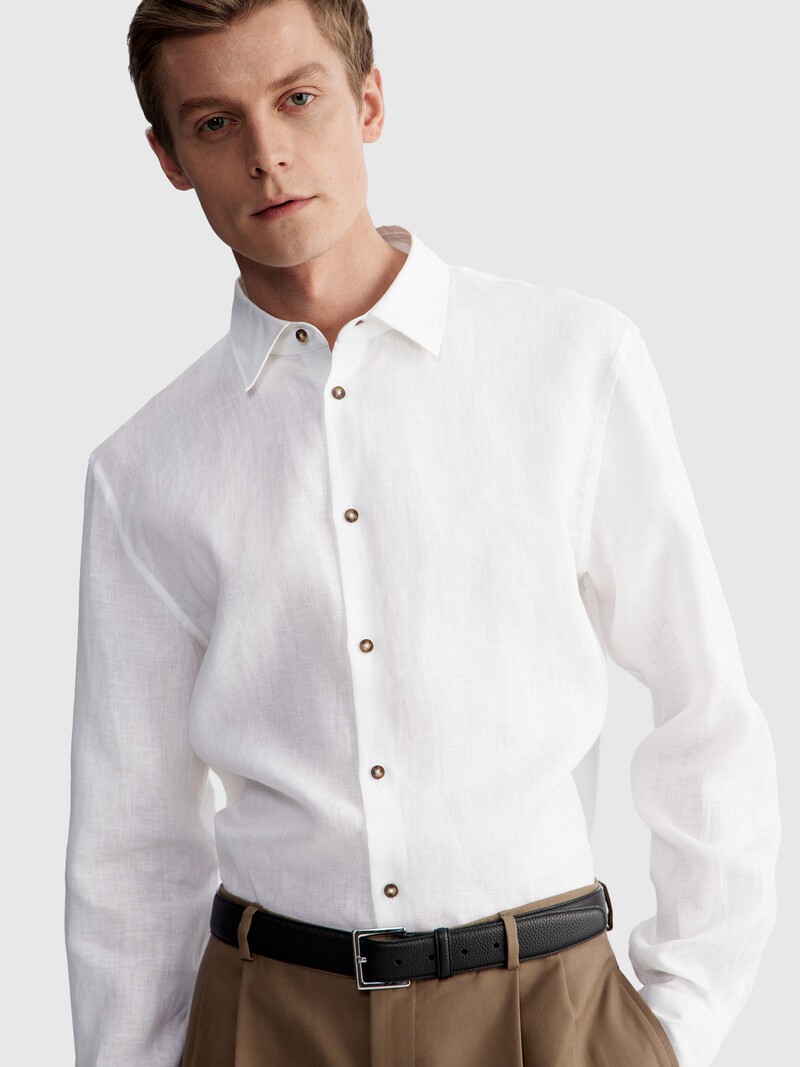 Льняная рубашка с лаконичной планкой и округлой линией низа выглядит неформально, но благодаря плотным манжетам и воротнику с косточками носить ее можно не только на отдыхе. Ткань — тонкая, легкая, равномерно окрашенная и прочная за счет саржевого переплетения нитей. Сочетайте с шортами из нашей коллекции. European Flax — сертифицированный европейский лен высшего качества: помогает сократить глобальный углеродный след, безопасен для человека и становится лучше с каждой стиркой Сделано в Китае.