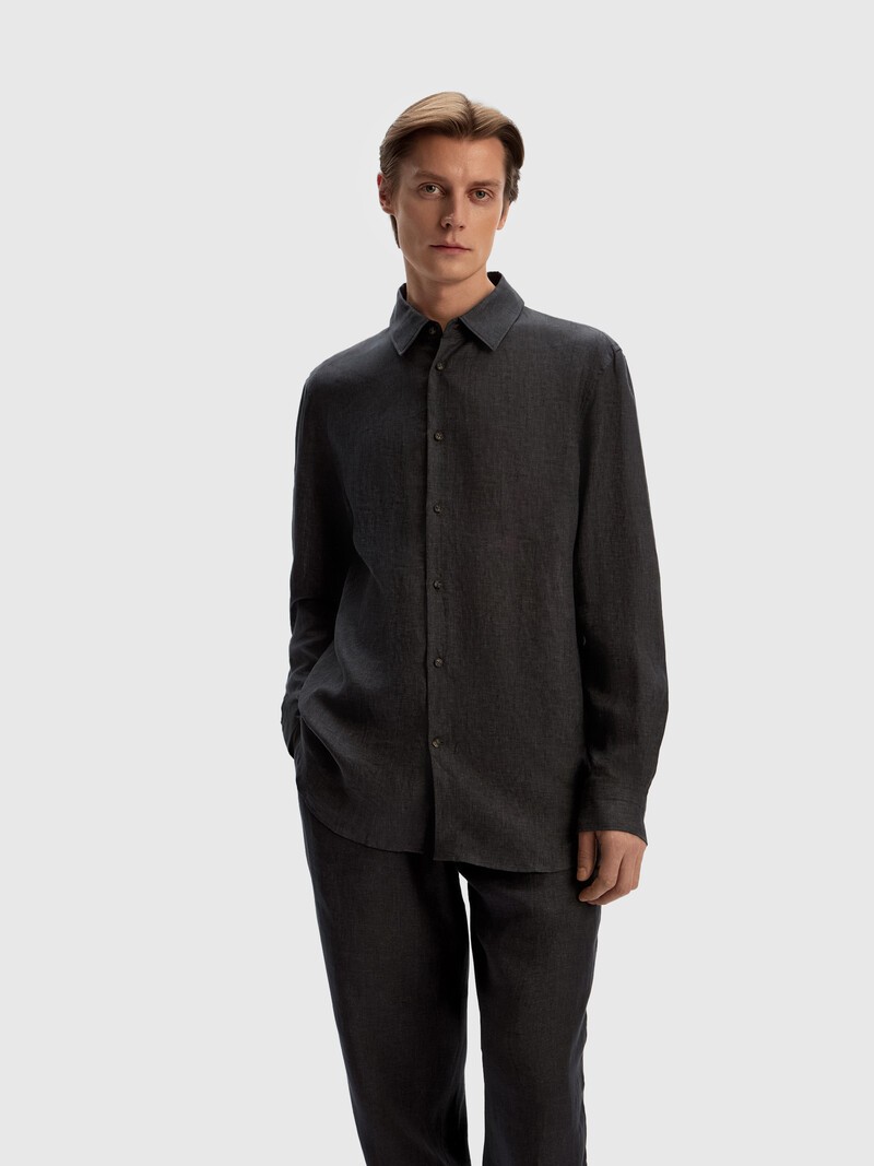Прямая рубашка из тонкого льна — он стал еще более мягким в новом сезоне. Крашение делаве придает ткани слегка винтажный характер и делает цвет глубоким и сложным. Носите рубашку навыпуск или заправив внутрь — получится по-летнему свежий образ для теплых дней в городе или прогулок у моря. European Flax — сертифицированный европейский лен высшего качества: помогает сократить глобальный углеродный след, безопасен для человека и становится лучше с каждой стиркой. Сделано в Китае.