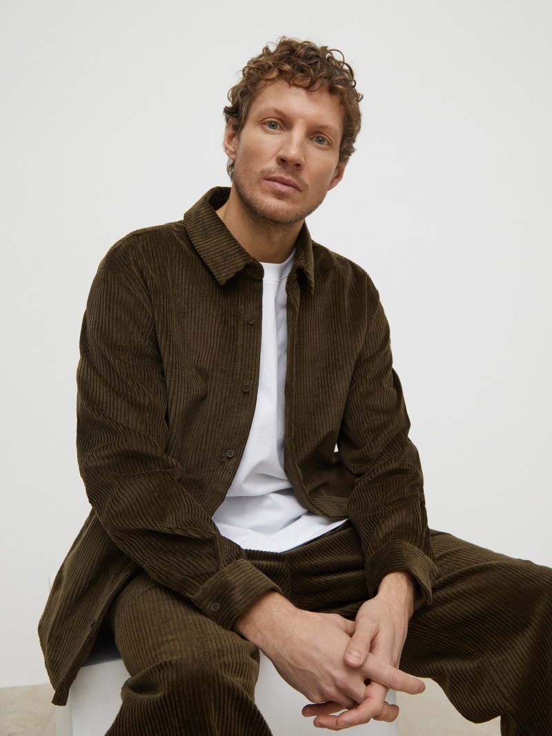 Рубашка из вельвета. Бархатная фактура, плотная ткань и карманы — эту рубашку легко стилизовать с футболками и водолазками вместо традиционного пиджака. - Прямая, стандартной длины - Супатная застежка на пуговицы, карманы по бокам - Французский вельвет на основе хлопка — дышащий, приятный к коже и согревающий материал - У ткани выраженный мягкий ворс, она не просвечивает, мало истирается и долго служит - Переработанный полиэстер — вторичное сырье, помогает уменьшить количество пластика на планете Сделано в Беларуси.