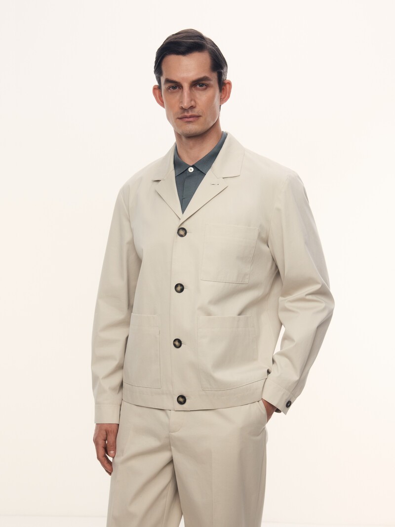 1. Не формальный пиджак, который можно носить и как легкую куртку 2. Ткань для этой модели для нас создала фабрика в Прато — поставщик Loro Piana, Hermès, Gucci, Yves Saint Laurent, Alexander McQueen и Dries Van Noten 3. Сатиновое переплетение делает хлопок гладким, менее мнущимся и шелковистым на ощупь 4. Можно сделать силуэт более объемным с помощью хлястиков на кнопках 5. Приятная тактильно подкладка с шерстью 6. Никаких цепляющих деталей: ярлык с рекомендациями по уходу — внутри левого внутреннего кармана