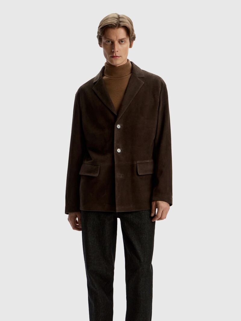 Универсальный пиджак — прямой, достаточно свободный, с карманами и удобной застежкой на пуговицы. Благодаря чуть расширенному в плечах силуэту такую модель комфортно надеть на джемпер или рубашку. Выполнен из плотной, мягкой и пластичной замши с ровным велюровым ворсом. Приятный и долговечный материал от нашего поставщика из Турции надолго сохраняет тепло — а значит, пиджак легко заменит тренч или блейзер в прохладные дни. На шелковистой подкладке. Серебряный статус LWG означает, что фабрика руководствуется принципами экологической безопасности используемых красителей, имеет необходимые очистные сооружения и заботится о здоровье сотрудников. Сделано в Турции.