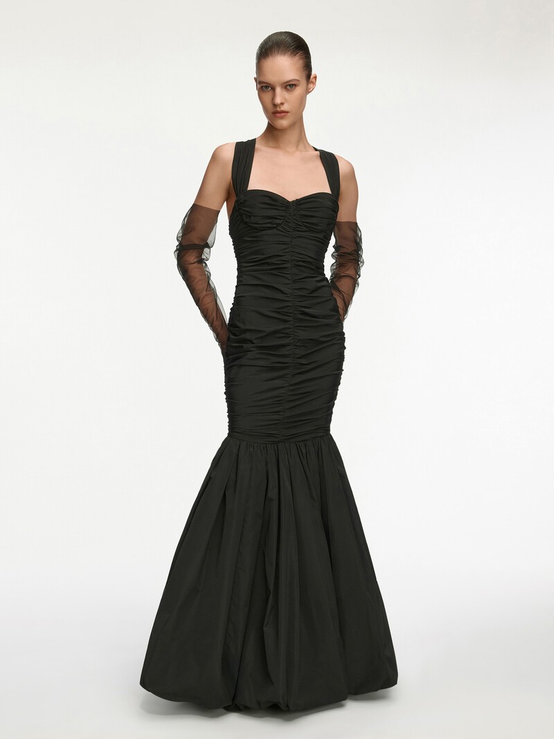 1. Тафта с 12% шелка — плотная, мягкая, слегка хрустящая ткань с матовым блеском 2. Благодаря сборке и коктейльному лифу с косточками платье комплиментарно подчеркивает фигуру и формирует стройный силуэт 3. Подкладка из эластичной итальянской вискозы почти не ощущается, делает платье плотнее и долговечнее Тафта мнется, и в складках ее блеск становится еще выразительнее. Чтобы разгладить ткань, используйте утюг (не отпариватель) Вернуть или обменять изделие можно, только если все ярлыки на месте