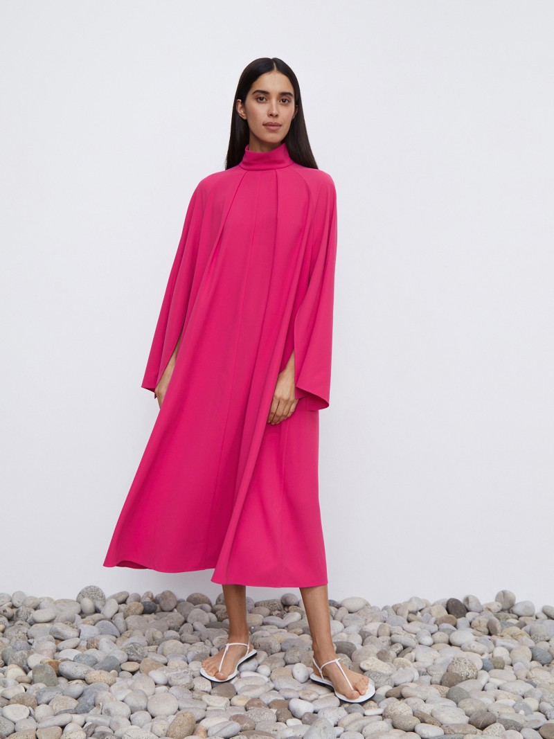 Вечернее платье в стиле свободного кейпа. Плотная мягкая ткань собрана в пластичные складки, которые визуально вытягивают силуэт, а широкие рукава дополнены разрезами, что подчеркивает хрупкость запястий. Мы не стали утяжелять платье подкладкой, но добавили карманы, чтобы сделать образ еще более комфортным. - Эко-сертификат Öeko-Tex Standard 100 означает, что все нити, красители, финишные обработки нетоксичны, гипоаллергенны, безопасны для человека. - Фабрика активно инвестирует в уменьшение вреда для окружающей среды: 55% воды используется на производстве повторно, выбросы СО2 сократились на 600 кг на каждый кг ткани, утилизируются или перерабатываются 99,7% отходов. Сделано в России.