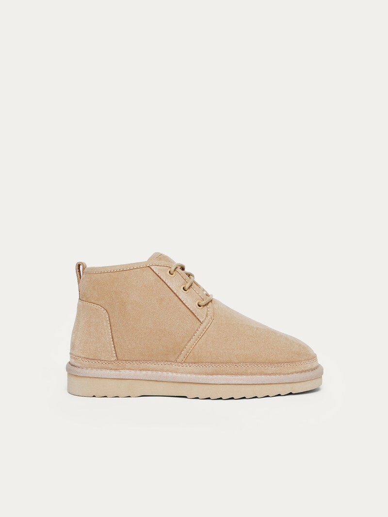 Ботинки даблфейс. Уютные ботинки для долгих прогулок в морозные дни: верх выполнен из мягкой бархатистой замши, а внутри — густая овчина. Ботинки облегают ногу, как теплые носки, а вставка из плотной замши помогает обуви держать форму. Легкая подошва из пористого материала приподнимает стопу над холодной землей. - Полноразмерные, стандартная полнота - После покупки рекомендуем обработать влагоотталкивающим средством - При частом ношении подошва может спрессовываться, но затем восстанавливает форму Сделано в Китае.