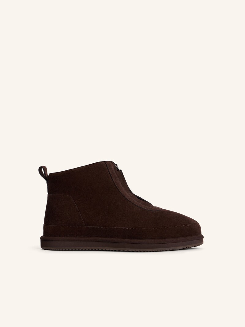 1. Внутри — густой натуральный мех, а значит, будет тепло на зимней прогулке и не жарко в кафе 2. Легкая пористая подошва с резиновым протектором — меньше скользит и медленнее стирается 3. Застегиваются одним движением благодаря металлической молнии по центру 4. Натуральный мех может окрашивать, потому что мы не используем химические закрепители цвета. Красители не токсичны и легко смываются водой 5. Чтобы ботинки служили дольше, не забудьте про обработку от влаги и старайтесь носить обувь в сухую морозную погоду