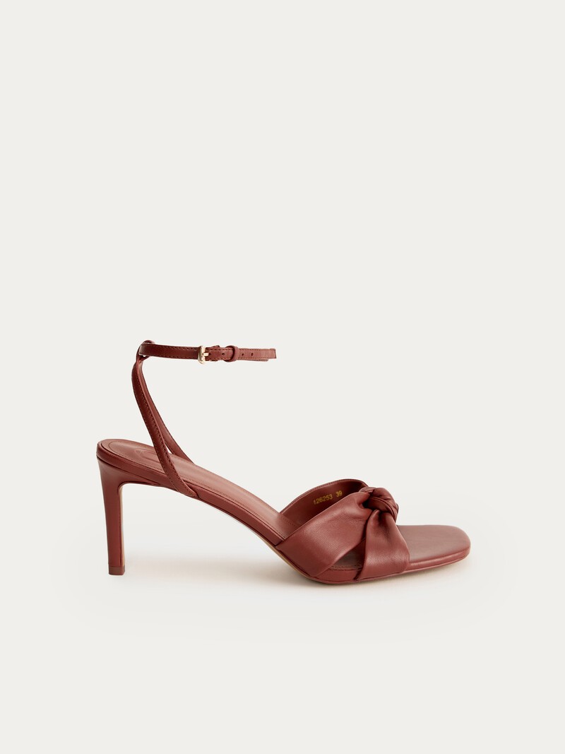 Легкие босоножки из нежной пластичной кожи шевро с мягкими перемычками, имитирующими бант, и ремешком с изящной золотой пряжкой. Мы сделали их максимально удобными: устойчивый каблук высотой 7,5 см, сквадраченный нос, подошва с инжекцией и стелька из микрофибры, комфортной и долговечной. Пожалуйста, обращайтесь с каблуком аккуратно: острые камни или песок могут оставить на коже царапины и порезы. Сделано в Китае.