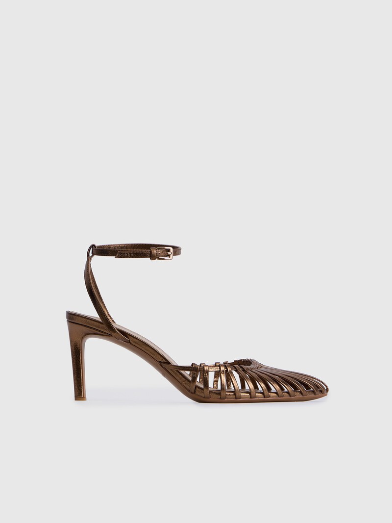 1. Плотная и долговечная коровья кожа с покрытием, которое придает материалу металлический блеск 2. Расположение ремешков мы выверяли так, чтобы пальцы не выскальзывали из босоножек, когда вы двигаетесь 3. Анатомически верная колодка, благодаря которой каблук высотой 8 см не ощущается и нога не устает 4. Не скользят по гладкому полу — легкую подошву из тунита дополнили инжекцией Каблук обтянут кожей — обращайтесь с ним аккуратно. Каблук обтянут кожей — обращайтесь с ним аккуратно.