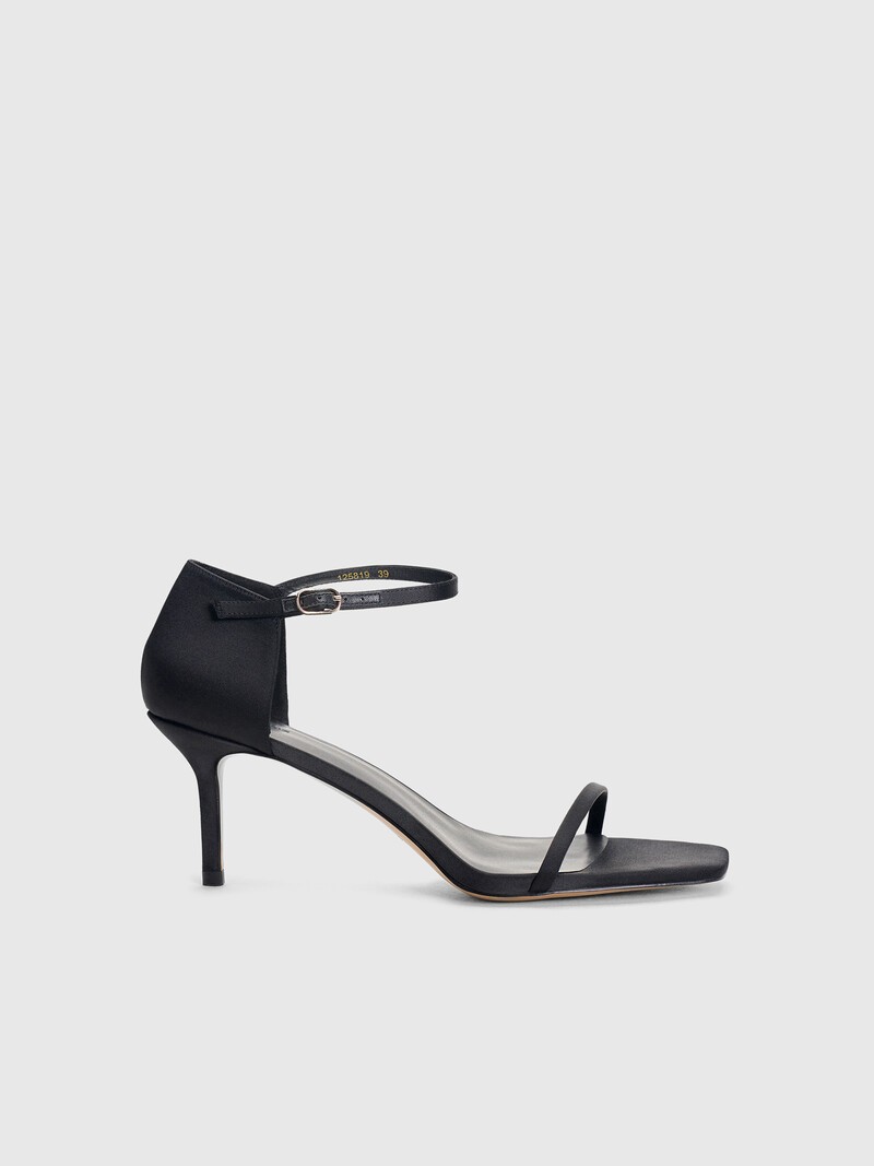 Изящные босоножки из сатина — закрытая пятка, высокий устойчивый каблук. Плотный матовый материал хорошо сочетается с моделями из шелка и бархата в нашей новогодней капсуле. Тунитовая подошва не скользит, а стелька выполнена из микрофибры, которая напоминает кожу, но более долговечна. Сделано в Китае.