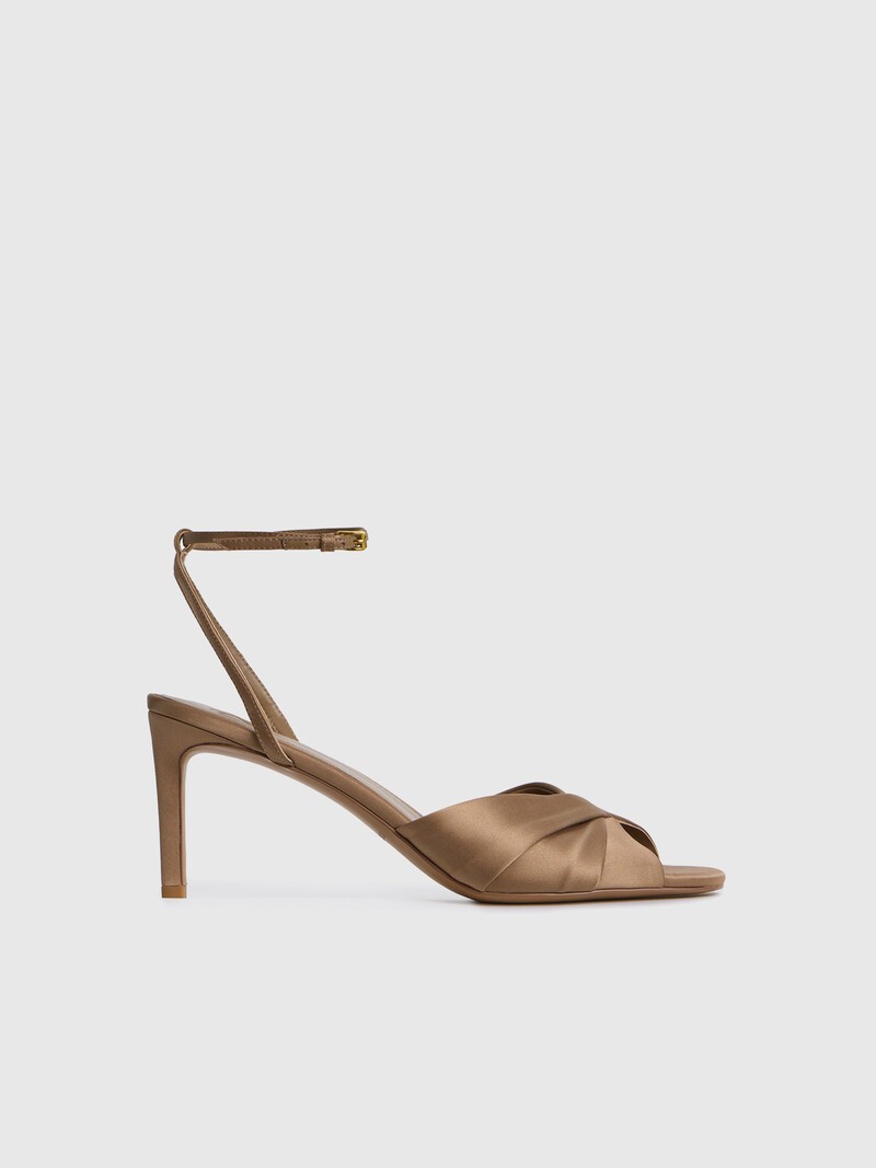 1. Анатомически верная колодка, благодаря которой каблук высотой 8 см не ощущается и нога не устает 2. Чтобы шелковый ремешок не растягивался, мы продублировали его тонкой кожей шевро. Из такой же кожи сделали подкладку и стельку 3. Не скользят по гладкому полу — легкую подошву из тунита дополнили инжекцией Каблук обтянут шелком — обращайтесь с ним аккуратно.