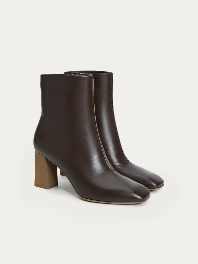 Классические ботильоны на высоком устойчивом каблуке — универсальное дополнение повседневных образов. Мы создали их из мягкой и плотной кожи, которая меньше царапается, и дополнили подкладкой из тонкой кожи шевро. Деликатный материал требует бережного обращения. После покупки обработайте обувь влагоотталкивающим средством. Сделано в Китае.