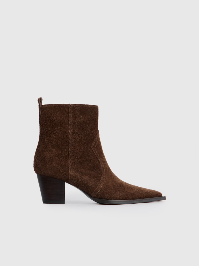 Замшевые ботильоны на широком устойчивом каблуке — для женственных образов в осенние дни. Нос заострен, а голенище мы сделали узким, чтобы создать красивую и графичную линию. Выполнены из плотной и мягкой замши с ровным ворсом и дополнены подкладкой и стелькой из нежной кожи шевро. Сделано в Китае.