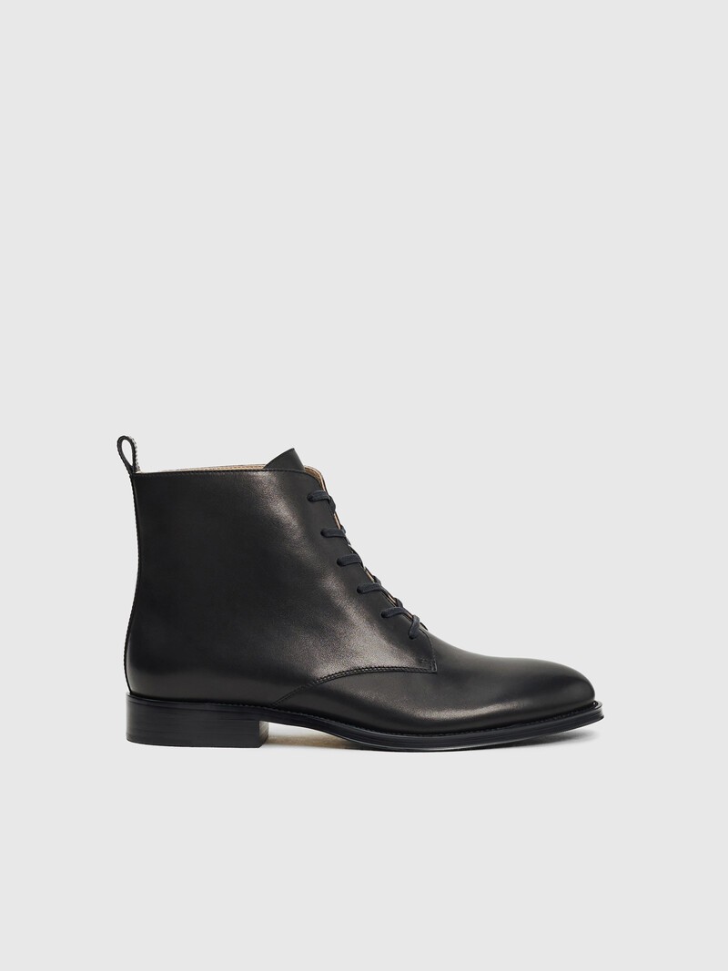 Классические городские ботинки: изящная колодка, комфортный широкий каблук, подкладка из кожи шевро. Они закрывают щиколотку, поэтому вполне подойдут для ветреных дней в межсезонье. Благодаря нескользящей подошве из тунита с протектором эта модель не выглядит громоздко. А стелька с мягкой подушечкой под пяткой обеспечит комфорт при ходьбе. Деликатный материал требует бережного обращения. После покупки обязательно обработайте обувь влагоотталкивающим средством. Сделано в Китае.
