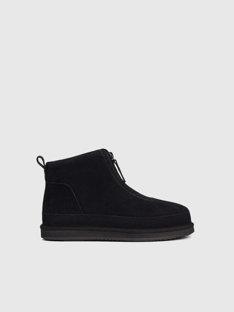 Короткие угги на молнии — уютные и мягкие, как тапочки. Верх выполнен из плотной замши, а подкладка — из густой овчины того же оттенка. Легкая подошва из пористого материала дополнена резиновым протектором, который защищает от промерзания и скольжения. Пожалуйста, старайтесь не носить ботинки в сырую погоду. Вес пары в 37 размере: 0,82 кг Сделано в Китае.