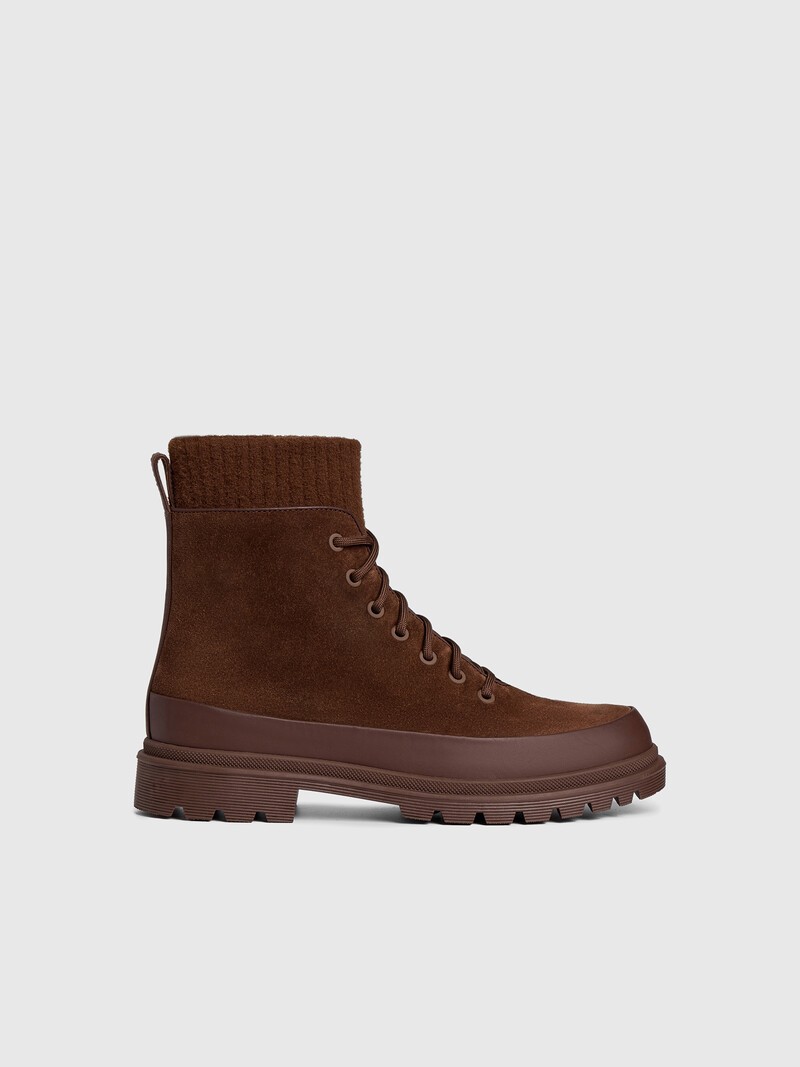 Ботинки из плотной, мягкой и бархатистой замши незаменимы в ненастные дни — они не скользят благодаря глубокому протектору и отлично греют. Мы дополнили их носком из вязаного трикотажа и добавили прорезиненную деталь для защиты подошвы от грязи и пыли. В модели нет контрастных деталей, а значит, ее легко сочетать практически с любыми предметами сезонного гардероба. Вес пары в 37 размере: 0,98 кг Сделано в Китае.