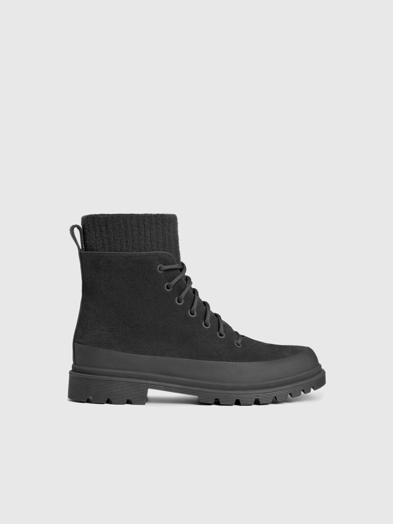 Ботинки из плотной, мягкой и бархатистой замши незаменимы в ненастные дни — они не скользят благодаря глубокому протектору и отлично греют. Мы дополнили их носком из вязаного трикотажа и добавили прорезиненную деталь для защиты подошвы от грязи и пыли. В модели нет контрастных деталей, а значит, ее легко сочетать практически с любыми предметами сезонного гардероба. Вес пары в 37 размере: 0,98 кг Сделано в Китае.