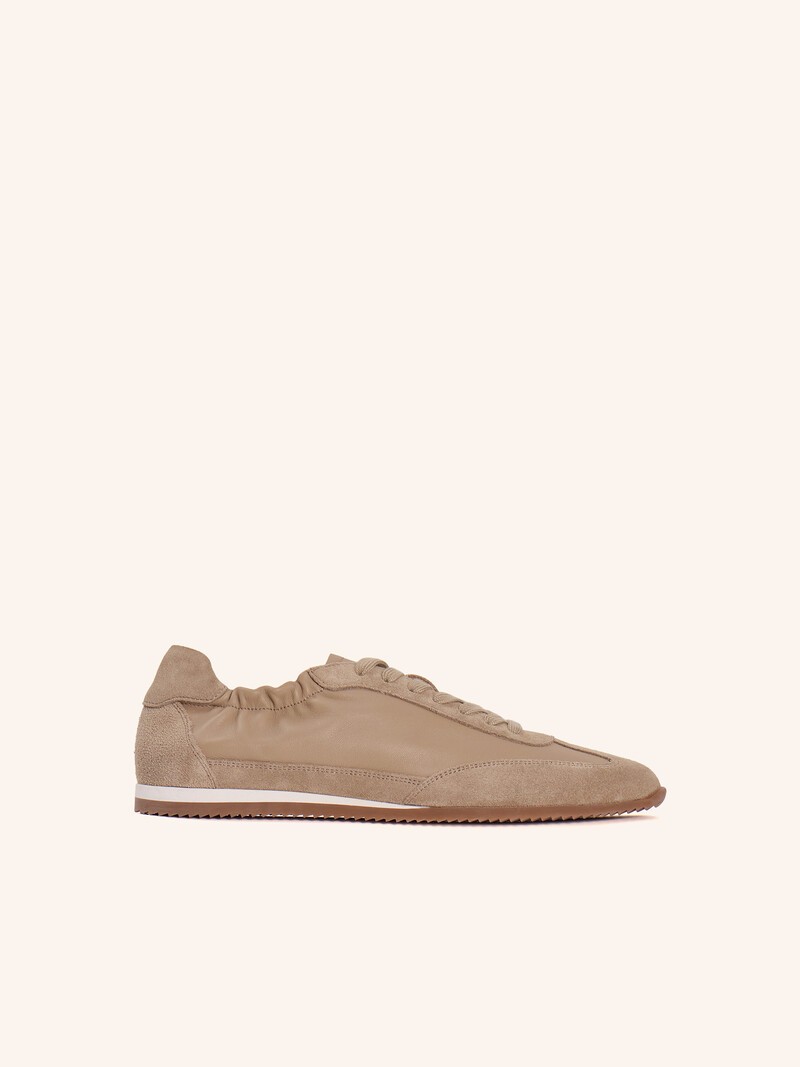 1. Гибкие и мягкие — выполнены из бархатистой коровьей замши и гладкой кожи козы 2. Легкие и почти не ощущаются благодаря тонкой подошве из резины и ЭВА 3. Выглядят аккуратно: эластичный край помогает кедам мягко прилегать к ноге без давления 4. Созданы для долгих прогулок и активных дней в городе Вес пары в 37 размере: 0,48 кг