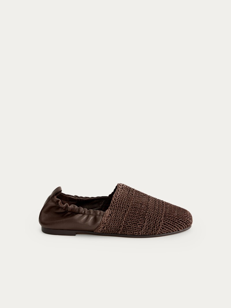 Комфортные лоферы из плетеной кожи с мягкой пяткой. Союзка вручную связана из тонкого кожаного шнурка шириной всего 2 мм. Подкладки нет — они легко принимают форму стопы, не деформируясь благодаря уплотнениям по краям. Эластичная пяточная часть и стелька выполнены из натуральной кожи шевро, а легкая тунитовая подошва дополнена инжекцией. Сделано в Китае.