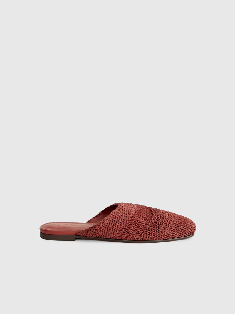 Мюли со сквадраченным носом, на плоском ходу и с резиновым каблуком — комфортные, как любимые тапочки. Подкладки нет, поэтому они легко принимают форму стопы, не деформируясь благодаря уплотнениям по краям. Стелька выполнена из натуральной кожи шевро, а легкая тунитовая подошва дополнена защитой от скольжения. Сделано в Китае.