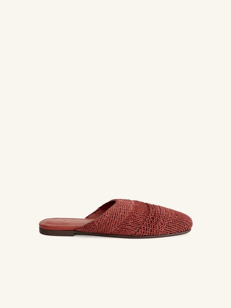 Мюли со сквадраченным носом, на плоском ходу и с резиновым каблуком — комфортные, как любимые тапочки. Подкладки нет, поэтому они легко принимают форму стопы, не деформируясь благодаря уплотнениям по краям. Стелька выполнена из натуральной кожи шевро, а легкая тунитовая подошва дополнена защитой от скольжения.