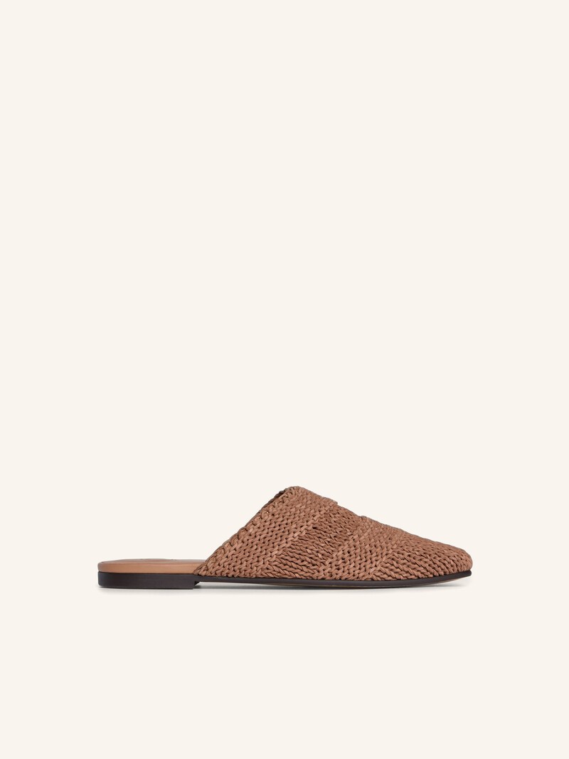 Удобные, как тапочки, мюли — для дней, когда хочется прогуливаться по набережной или отдыхать со скетчбуком в летнем кафе. Тонкий шнурок из мягкой кожи переплетен вручную, а отсутствие подкладки и легкая подошва из тунита делают мюли легкими и дышащими. Вес пары в 37 размере: 0,42 кг.