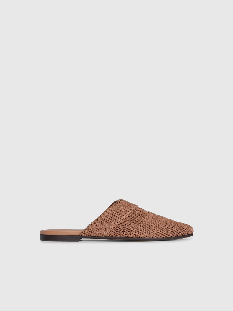 Удобные, как тапочки, мюли — для дней, когда хочется прогуливаться по набережной или отдыхать со скетчбуком в летнем кафе. Тонкий шнурок из мягкой кожи переплетен вручную, а отсутствие подкладки и легкая подошва из тунита делают мюли легкими и дышащими. Вес пары в 37 размере: 0,42 кг. Сделано в Китае.