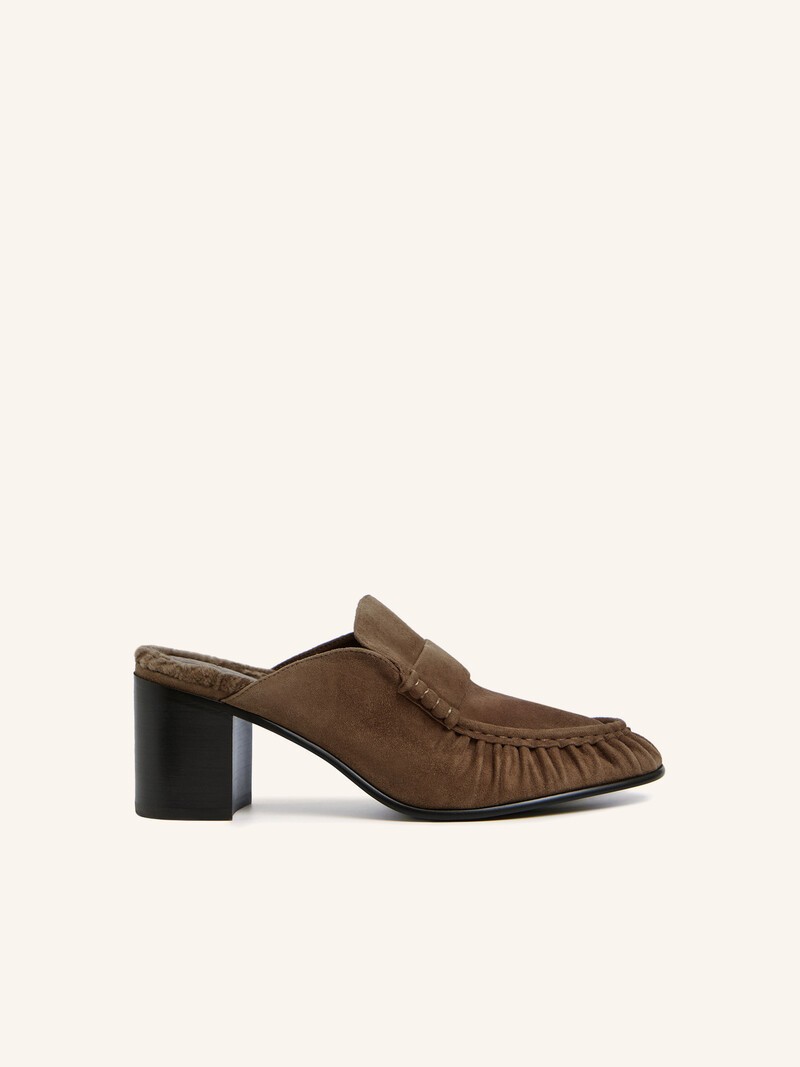 Замшевые мюли со стелькой из овчины — в этой паре будет тепло и комфортно в первые прохладные дни, когда еще хочется носить обувь на голую ногу. Мы выбрали для них замшу с ровным и нежным ворсом и добавили подкладку из износостойкой микрофибры, а каблук высотой 7 см сделали устойчивым и широким. Вес пары в 37 размере: 0,62 кг.