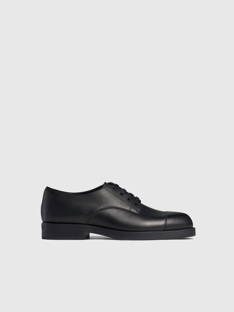 Удобные повседневные полуботинки дерби с зауженным носом, каблуком высотой 2,5 см и массивной резиновой подошвой подходят и к женственным юбкам, и к брюкам в мужском стиле. Выполнены из гладкой и матовой кожи коровы, приятной на ощупь. Вощеные шнурки позволяют комфортно посадить обувь на подъем любой высоты и отрегулировать полноту, а края продублированы мягким наполнителем. Подкладка и стелька — из кожи шевро. Вес пары в 37 размере: 0,78 кг Сделано в Китае.