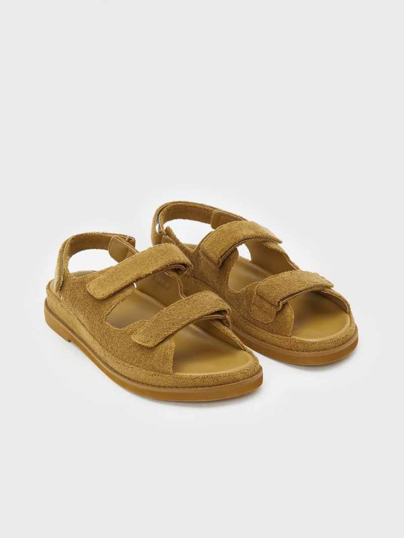 Сандалии с широкими ремешками на липучках правильно распределяют нагрузку на стопы при ходьбе, благодаря чему ноги не устают. Выполнены из прочного «махрового» текстиля на мягкой подкладке, имеют гибкую и долговечную подошву и стельку из микрофибры, которая визуально и на ощупь не отличима от кожи, но не стирается под пальцами. Сделано в Китае
