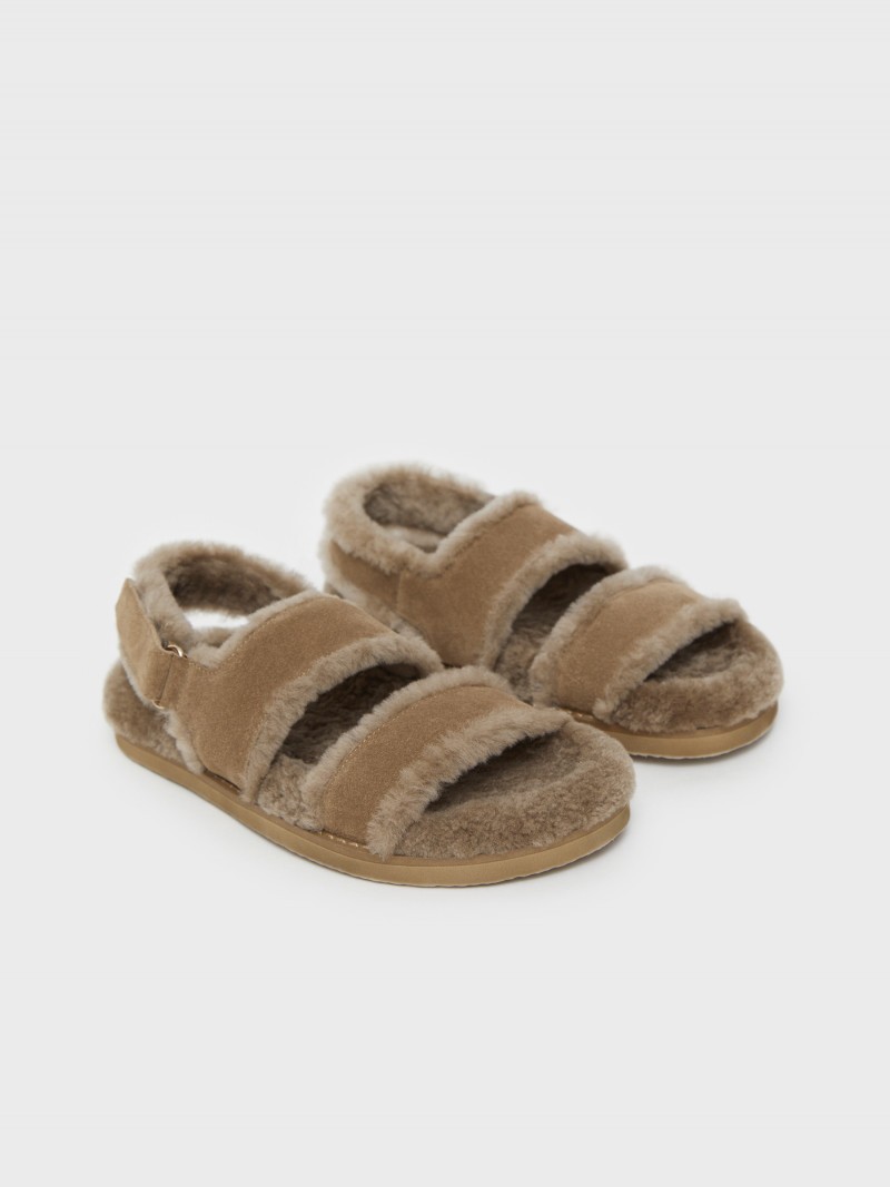 Сандалии на меху остаются в гардеробе независимо от времени года. В офисе или на вечеринке, осенним утром или вечером — за комфортный микроклимат и универсальность отвечают натуральные материалы и широкие перемычки с регулировкой. Выполнены из бархатистой замши с подкладкой из согревающей овчины, предназначены для сухой прохладной погоды. Сделано в Китае.