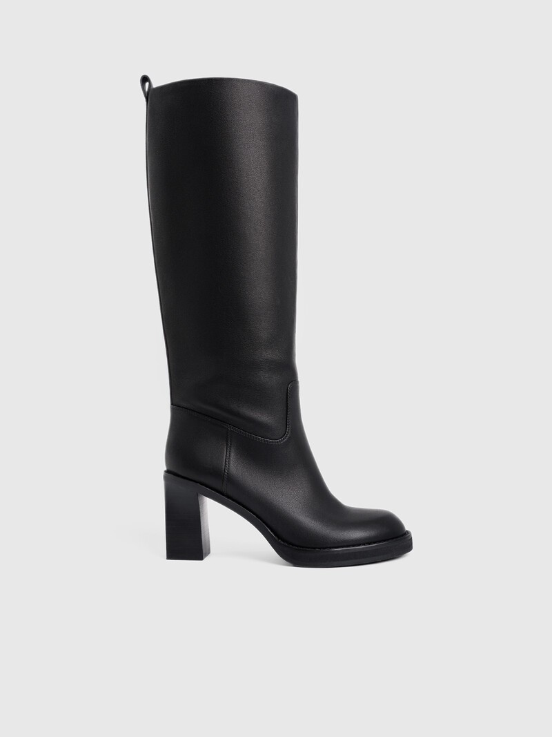 Новинка в нашей коллекции — демисезонные сапоги на высоком каблуке, выполненные из мягкой гладкой кожи. Застегиваются на молнию и повторяют линию ног, легко вписываются в гардероб благодаря универсальному цвету. Подошву мы сделали из резины — она получилась легкой и нескользкой, а каблук — широким и устойчивым. Вес пары в 37 размере: 1,22 кг. Сделано в Китае.
