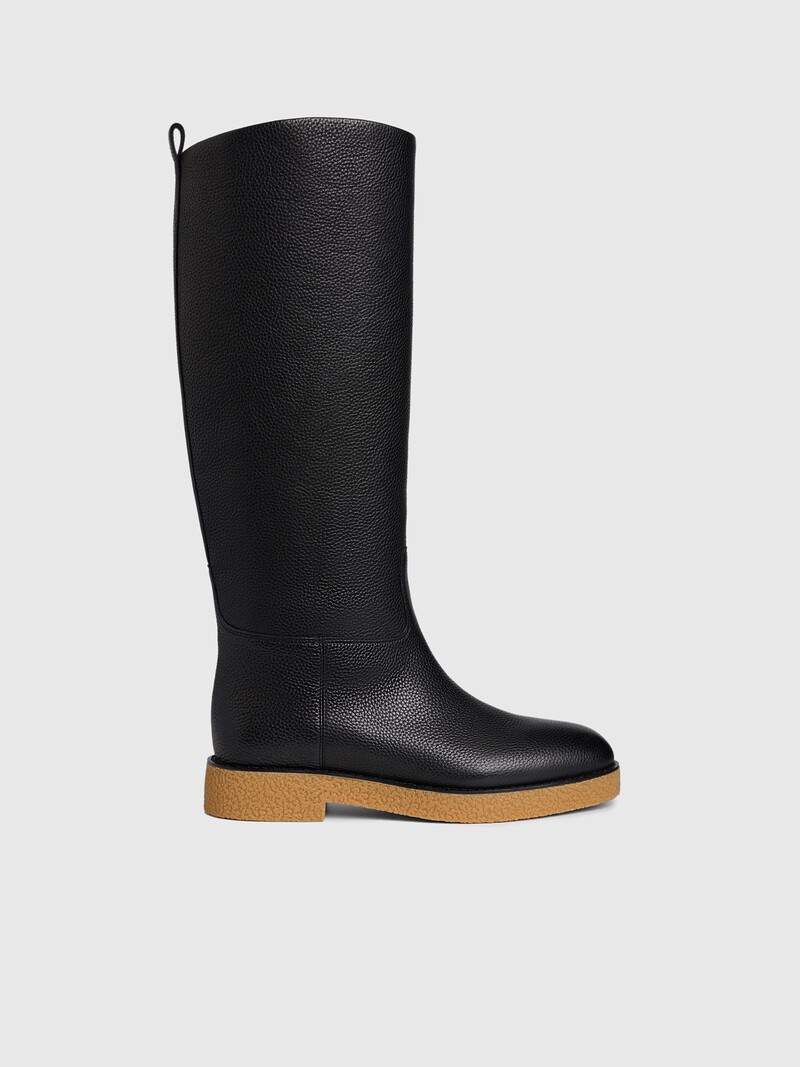 Актуальные сапоги-трубы с высоким прямым голенищем, которое хорошо держит форму. Мы долго работали над этой моделью, и в ней продумано все: удобный сквадраченный мыс, тактильно приятная подкладка из тонкой кожи шевро, удобная улучшенная колодка. Выполнены из мягкой зернистой кожи коровы с естественной фактурой. А гибкая и легкая подошва из термопластичной резины не скользит, не промерзает и не трескается от холода. Вес пары в 37 размере: 1,27 кг Сделано в Китае.
