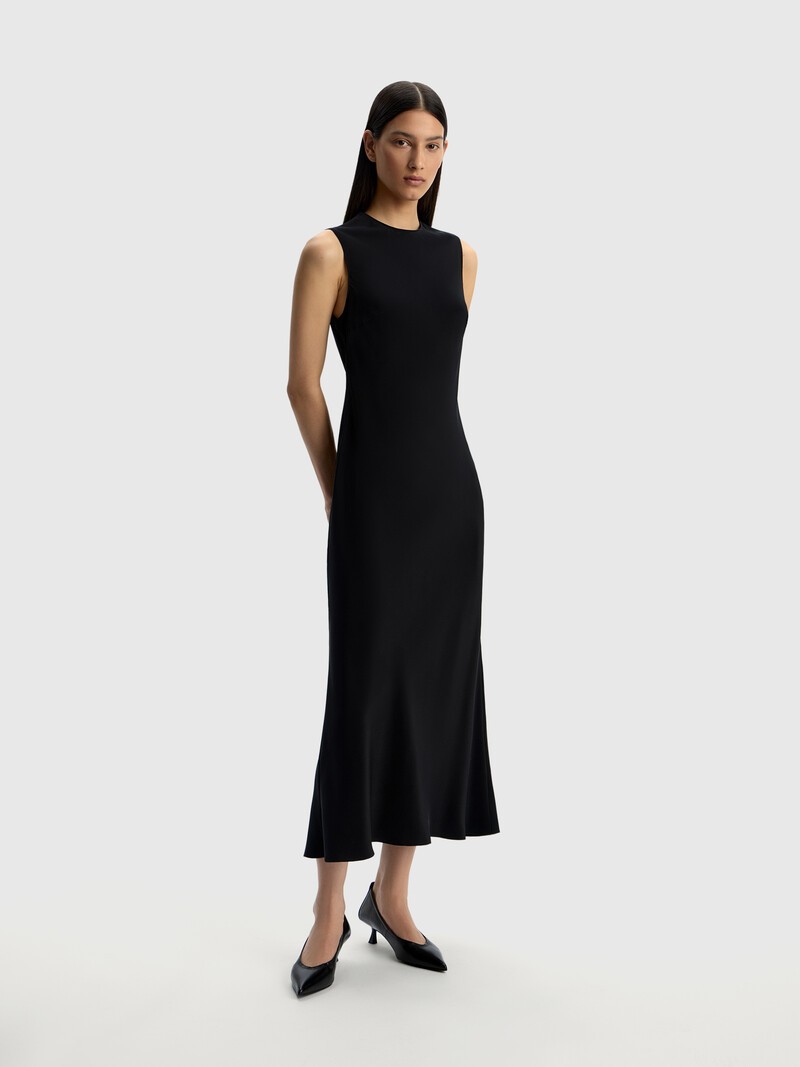 Лаконичное платье из шелка скроено по косой и эффектно струится в движении. Плотный тутовый шелк с деликатным сиянием мягко облегает силуэт и не просвечивает, поэтому платье будет уместно не только в вечерних, но и в повседневных классических образах. Застегивается на молнию. 100% Mulberry шелк — самый ценный вид шелковых волокон. Сотканный из тончайших нитей, этот матовый материал отличается особой прочностью. Сделано в России.