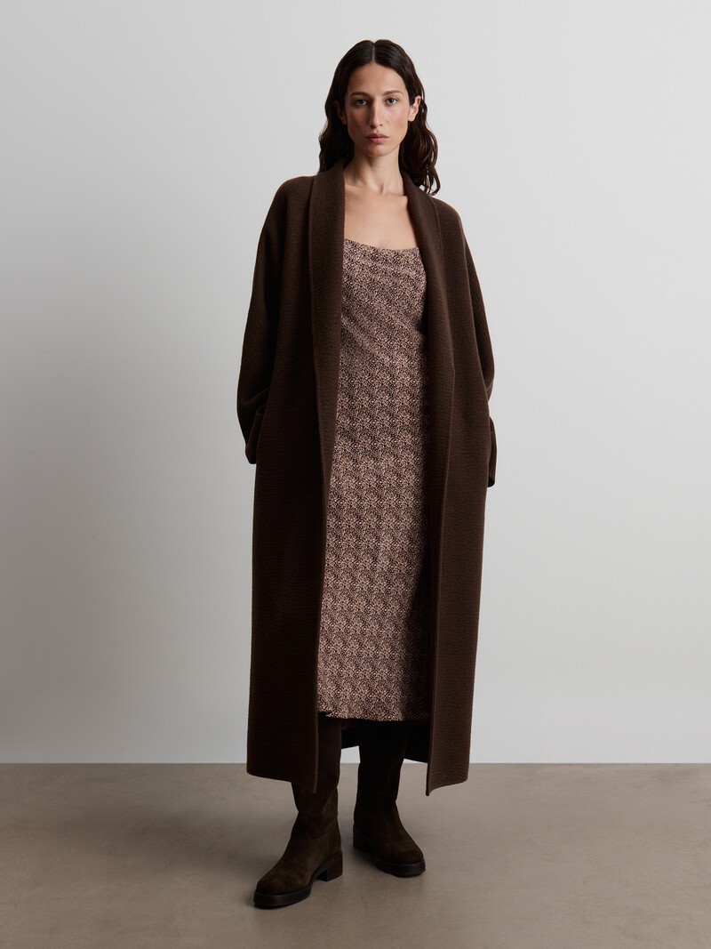 Лаконичное платье-комбинация длины миди мягко подчеркивает силуэт — и подойдет ко всему. Его можно носить и в городе, и в дни отпуска, дополнять кардиганом или жакетом — образ получится нежным и женственным. Легкий и дышащий шелковый шифон с изящным принтом мы продублировали подкладкой из вискозы и шелка. Деликатный материал требует бережного обращения. Аксессуары могут оставить затяжки или повредить нить. 100% Mulberry шелк — самый ценный вид шелковых волокон. Такой шелк сияет и переливается при любом освещении, а его нити тоньше, легче и прочнее аналогов. Сделано в России.