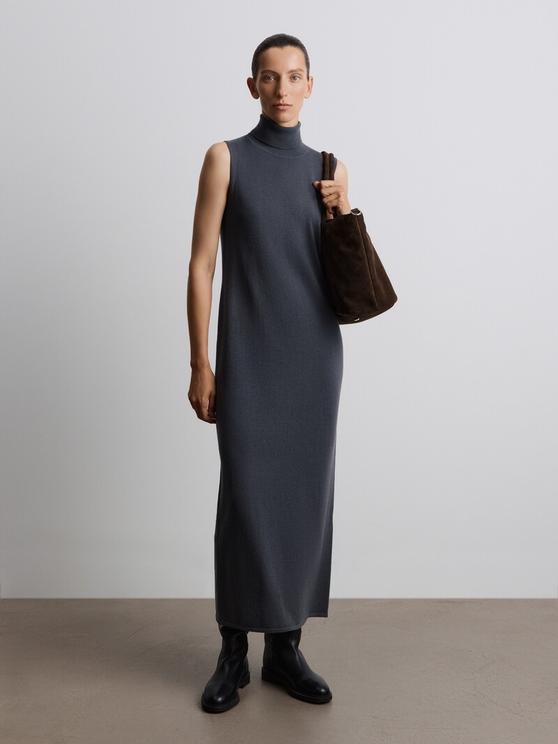 Прямое длинное платье с воротником-стойкой связано в одну нить из тонкой мериносовой шерсти с добавлением нежного кашемира и станет основной комфортного образа для сухой прохладной погоды. Благодаря множеству мелких петель гипоаллергенный трикотаж получается легким и не просвечивает. Сочетайте с курткой из денима, рубашкой или жакетом. Рекомендуем носить с бесшовным бельем. У этого изделия низкая пиллингуемость. При правильном уходе первые пилли могут появиться на нем в среднем через 10 носок. Для удаления пиллей пользоваться специальной машинкой.