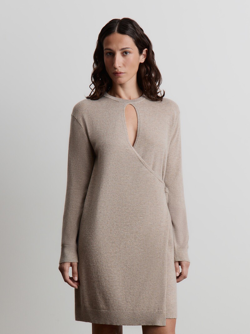 Вязаное платье из легкой смеси австралийского мериноса и нежного кашемира. Связано гладью в одну нить и получилось пластичным и очень комфортным благодаря свободному силуэту и нежной дышащей пряже. При трении о шероховатые поверхности пушинки кашемира могут скатываться. При правильном уходе первые пилли могут появится на изделии спустя 4-7 носок. Чтобы удалить пилли, пользуйтесь специальной машинкой. Сделано в Китае.