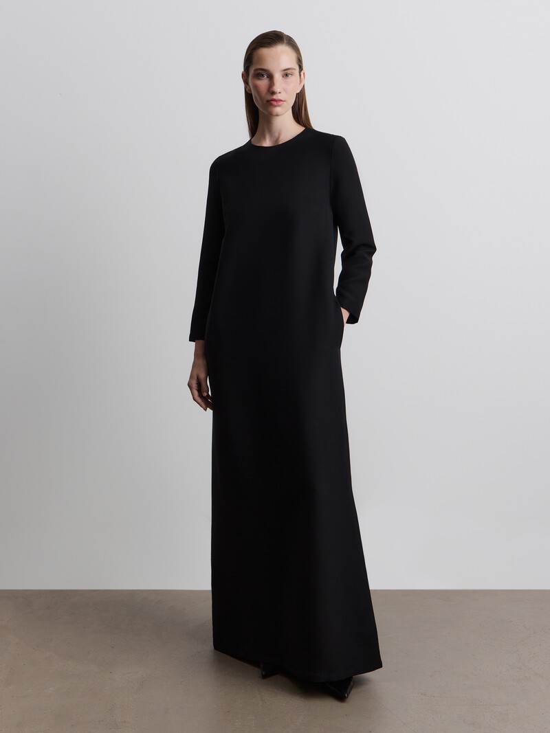 Широкое платье макси с аккуратным круглым вырезом и карманами с боковых швах — для расслабленных женственных образов. Благодаря особенностям материала в нем будет комфортно в любое время года. Легкая шерсть с шелком состоит из тончайших, плотно сплетенных нитей, поэтому отличается прочностью, гладкостью и отлично дышит. Застегивается на потайную молнию. Сделано в России.