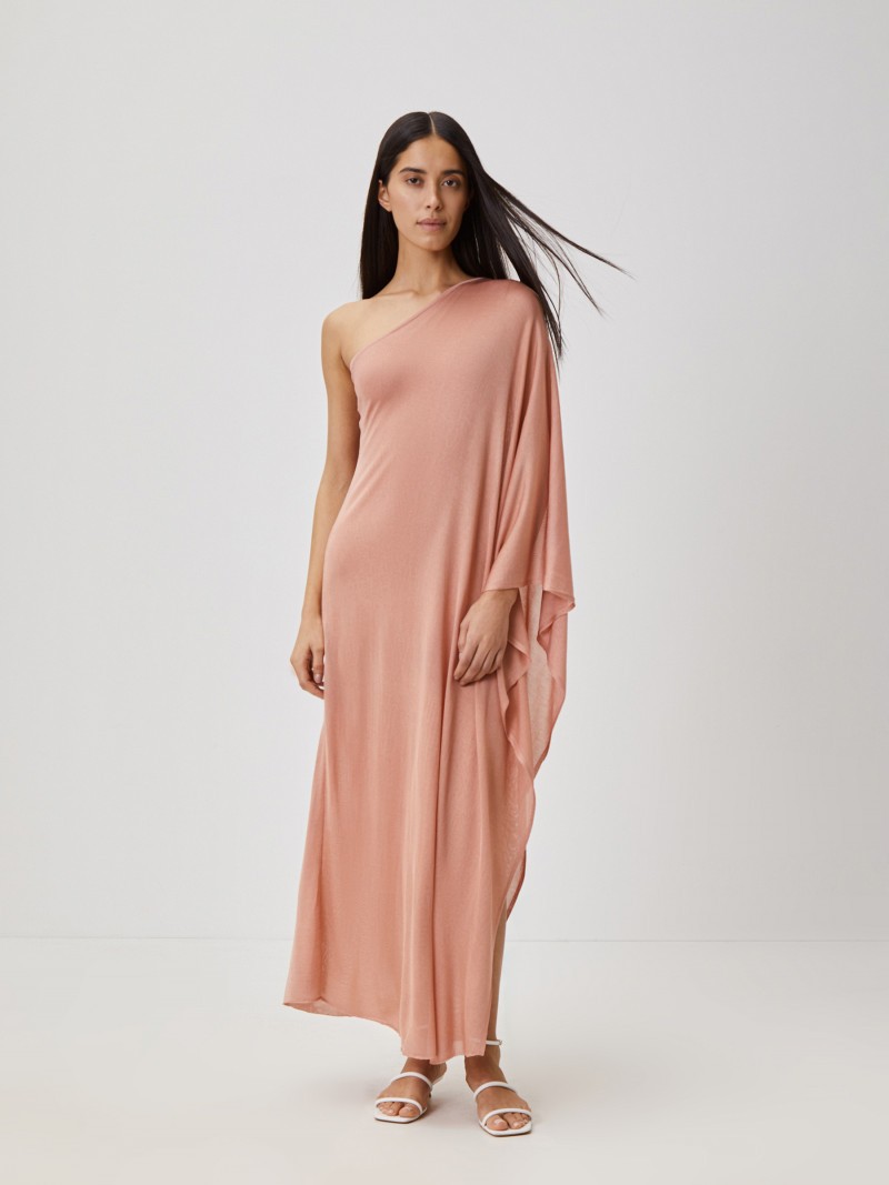 Двойное платье из тонкой летней пряжи, в составе которой нежные волокна лиоцелла и струящийся шелк. Лаконичное прямое платье на одно плечо дополнено полупрозрачной деталью, которая собирается в мягкие невесомые складки и создает летящий силуэт. Без застежки. Сделано в Китае.