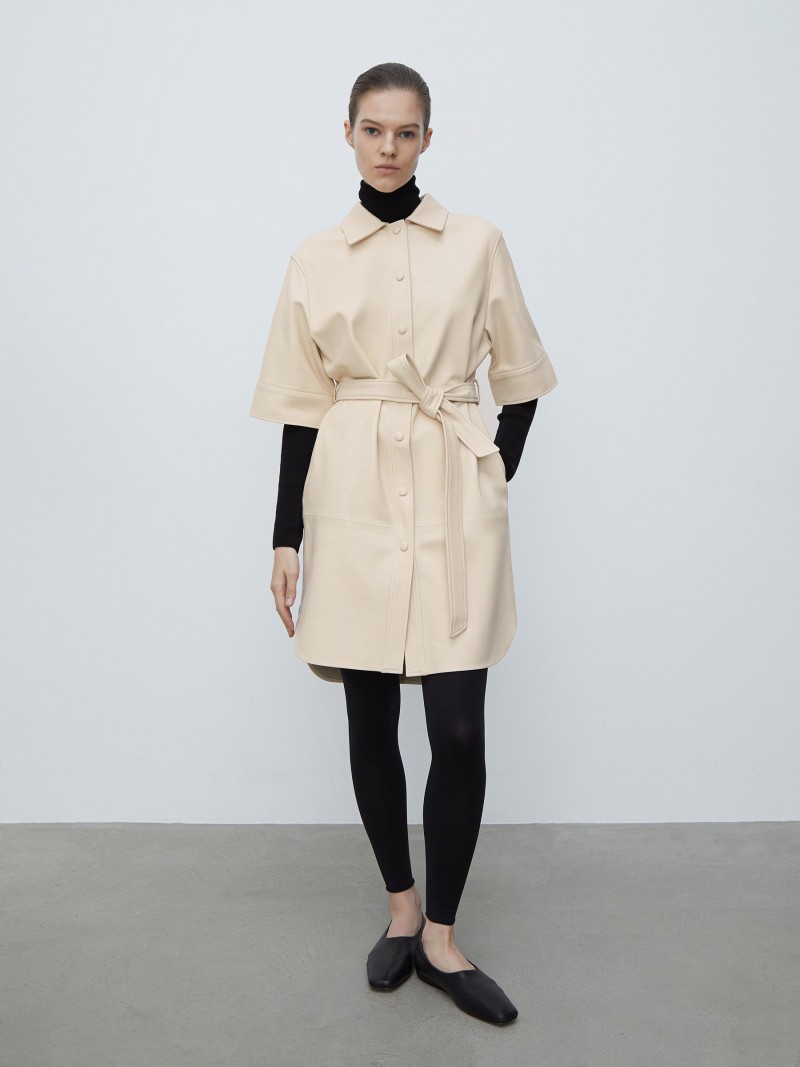Платье-рубашка из натуральной кожи. Умеренный over size и множество вариантов стилизации сделают это платье одним из самых любимых в гардеробе. • Застежка на кнопки, обтянутые кожей • Натуральная кожа ягненка — тонкая гладкая кожа с аутентичным рисунком, хорошо пропускает воздух и сохраняет тепло тела. Благодаря своей мягкости и тактильным свойствам считается одним из лучших видов кожи для изготовления одежды • Материал эластичный, спустя небольшое время после покупки изделие садится точно по фигуре • Кожа не впитывает влагу, поэтому в случае загрязнений ее можно протереть салфеткой. Не стирайте платье и пользуйтесь услугами только тех химчисток, которые специализируются на уходе за кожей • Изделие без подкладки. Благодаря особой технологии обработки, изнаночная сторона — гладкая, приятная к коже, без заметного ворса, с сохранением природных свойств кожи Сделано в Китае.