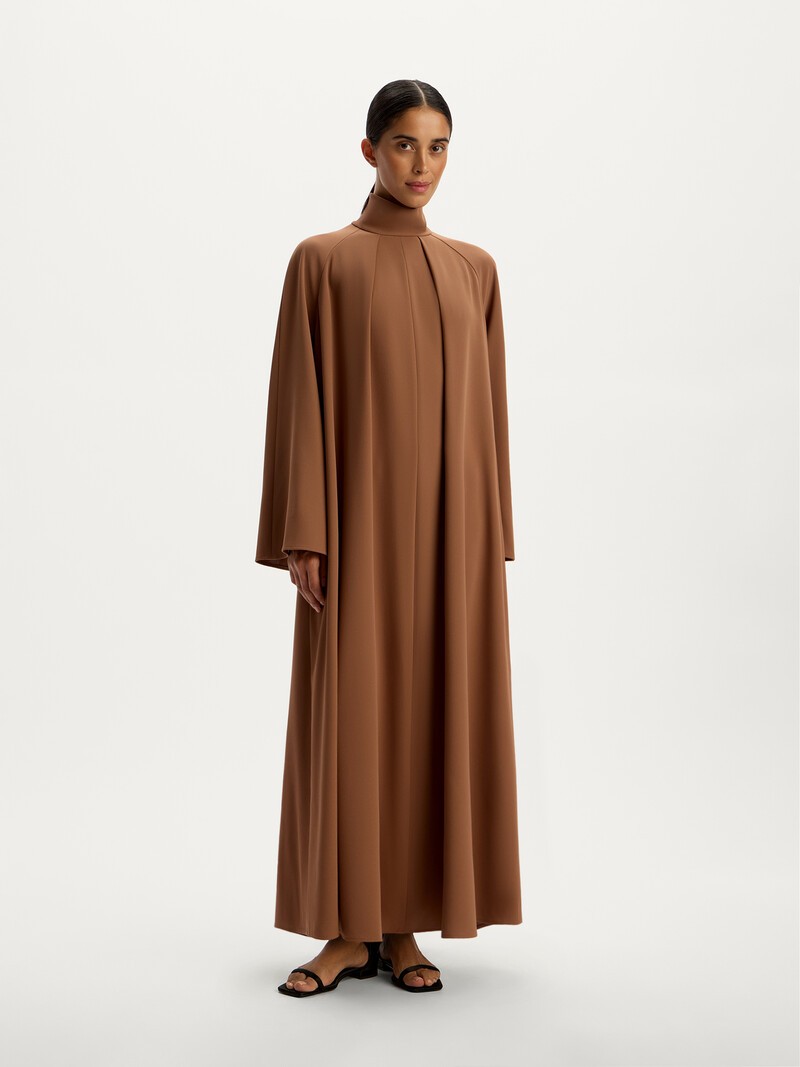 Платье в пол из плотной и мягкой ткани: вертикальные пластичные складки визуально вытягивают силуэт, а широкие рукава с разрезами подчеркивают хрупкость запястий. Мы не стали утяжелять платье подкладкой, но добавили карманы, чтобы сделать образ еще более комфортным. Сделано в Турции.