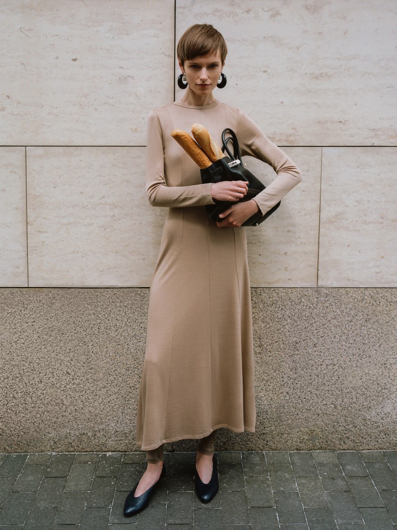 Платье из струящегося трикотажа. Сложный крой этого платья макси создает минималистичный комфортный образ, а потайная молния на спине позволяет одеться за несколько секунд. Для модели выбран тонкий тяжелый трикотаж на основе вискозы: двойное переплетение нитей (интерлок) делает материал более стабильным, долговечным и придает платью легкий блеск. Сделано в России.