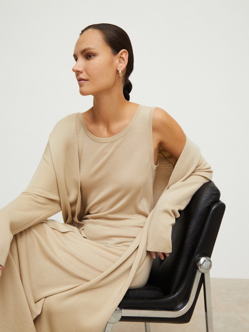 Вязаное платье в пол соединяет в себе лаконичность прилегающего силуэта и нежное прикосновение гладкого трикотажа. Для модели выбрали легкую пряжу из супертонкой шерсти мериноса и струящегося шелка. Рекомендуем подбирать белье в тон. Сделано в Китае.