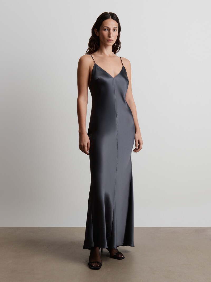 Платье в пол — для роскошных образов и особенных поводов. Сатиновое переплетение нитей придает плотному искусственному шелку глянцевый блеск, а лаконичный эффектный крой делает эту модель актуальной вне времени. Материал почти не мнется и красиво струится в движении, естественным образом облегая фигуру. Деликатный материал требует бережного обращения: аксессуары могут оставить затяжки или повредить нить Сделано в Китае.