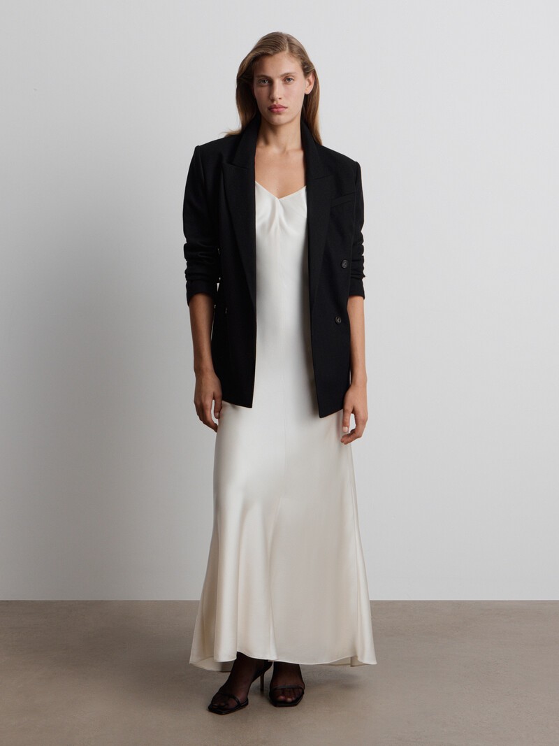 Изящное платье в пол с открытой спиной — для особенных вечеров, наполненных шумом цикад или звуками музыки. Струящийся тутовый шелк в движении мягко очерчивает силуэт и оттеняет загорелую кожу. В молочном оттенке он может слегка просвечивать, и к этому платью мы добавили шифоновую подкладку. 100% Mulberry шелк — самый ценный вид шелковых волокон. Такой шелк сияет и переливается при любом освещении, а его нити тоньше, легче и прочнее аналогов. Сделано в Китае.