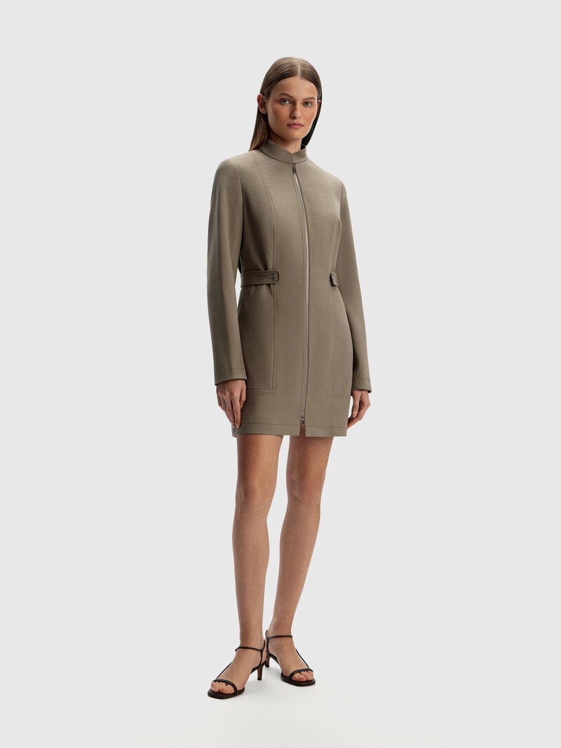 Платье-мини с воротником-стойкой, рельефами и боковыми карманами. Выполнено из гладкой и пластичной ткани от нашего португальского поставщика и дополнено тонкой подкладкой. Застегивается на двухзамковую металлическую молнию. Сделано в России.