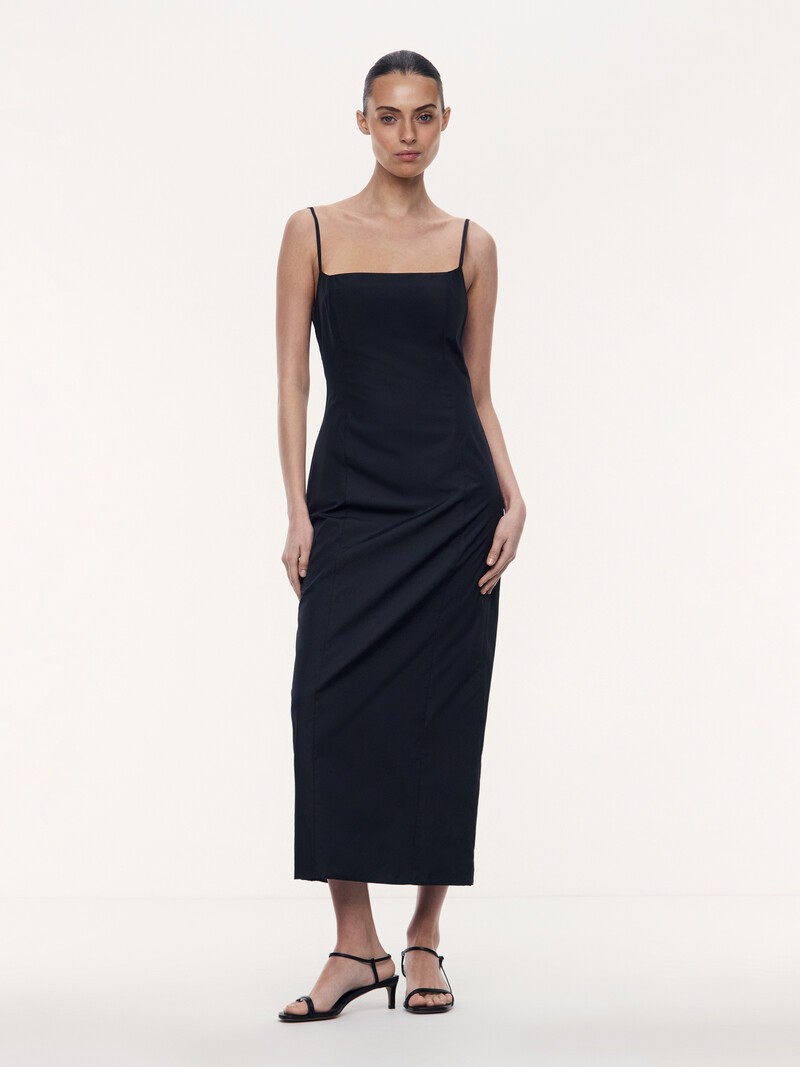 1. Для этой модели мы выбрали воздушную тафту с шелком. Ткань приятно шуршит и деликатно поблескивает 2. Создает женственный хрупкий силуэт благодаря глубокому вырезу каре и крою по фигуре 3. Садится на любой рост: бретели мы дополнили незаметными регуляторами 4. Подкладка из хлопкового батиста — чтобы в платье было комфортно весь день
