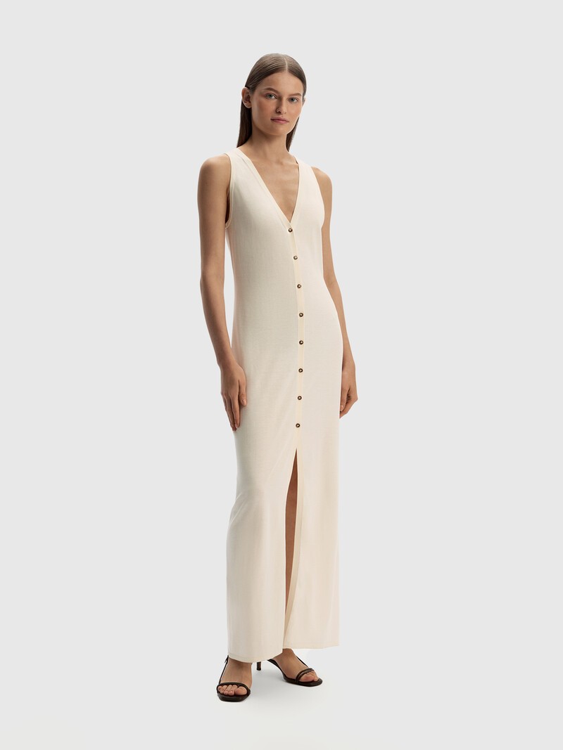 Длинное распашное платье из хлопка и шелка деликатно подчеркивает силуэт и оставляет ощущение свободы благодаря неплотному облеганию. Оно связано гладью из тонкой и нежной нити, трикотаж имеет едва заметный блеск и приятно охлаждает тело. Может немного просвечивать — учитывайте это при выборе белья. У этого изделия низкая пиллингуемость. При правильном уходе первые пилли могут появиться на нем в среднем через 10 носок. Сделано в Китае.