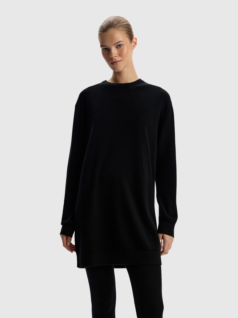 Минималистичное платье оверсайз — короткое, напоминающее мужской джемпер. Такое будет отлично смотреться с высокими сапогами-трубами, джинсами и кроссовками. В качестве аксессуара мы добавили съемный шарф, который крепится на потайную пуговицу. Связано из мягкой мериносовой шерсти с добавлением нежных волокон кашемира. Плотный и одновременно тонкий трикотаж комфортно облегает силуэт и не просвечивает. При трении о шероховатые поверхности пушистая нить может скатываться. У этого изделия средняя пиллингуемость. При правильном уходе первые пилли могут появиться на нем спустя 4-7 носок. Для удаления пиллей пользуйтесь специальной машинкой. Сделано в Китае.