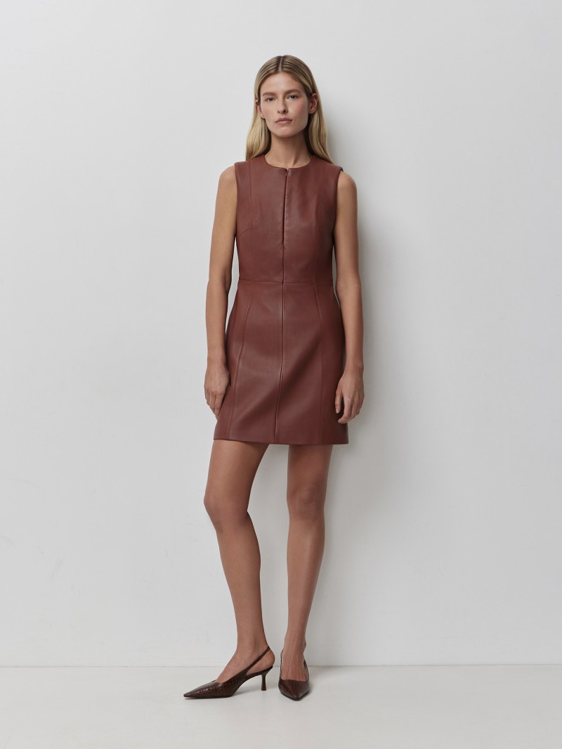 Безупречно сидящее платье мини — продуманный крой и рельефы по спинке и переду формируют женственный силуэт с акцентом на талии. Эластичная плотная кожа ягненка с гладкой фактурой отлично дышит, поэтому в платье будет комфортно даже при долгих прогулках по городу. При выборе размера убедитесь, что платье сидит свободно — это важно, чтобы изделие служило вам как можно дольше и меньше растягивалось. На подкладке. Серебряный статус LWG означает, что фабрика сводит к минимуму расходы электроэнергии и применение химикатов при обработке кожи, количество отходов и загрязнение сточных вод. Сделано в Турции.